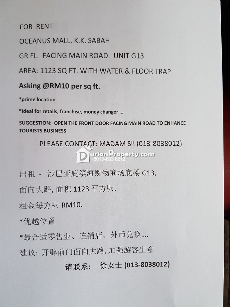 You may view Oceanus Waterfront Mall, Kota Kinabalu Profile for more details.