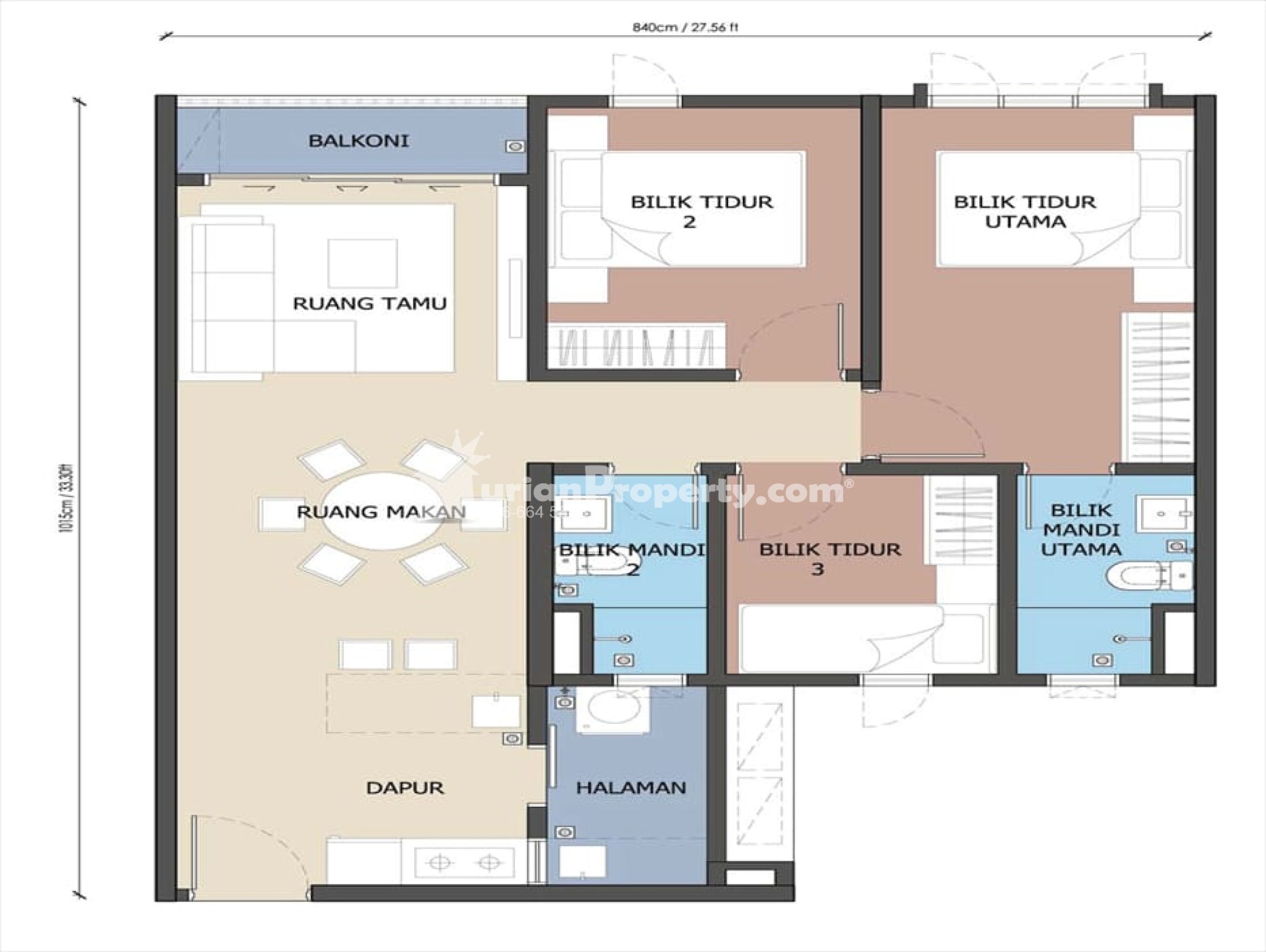 Lanai Residence, Bukit Jalil Stadium, LRT (800sf 3 Room 2 Bathroom)